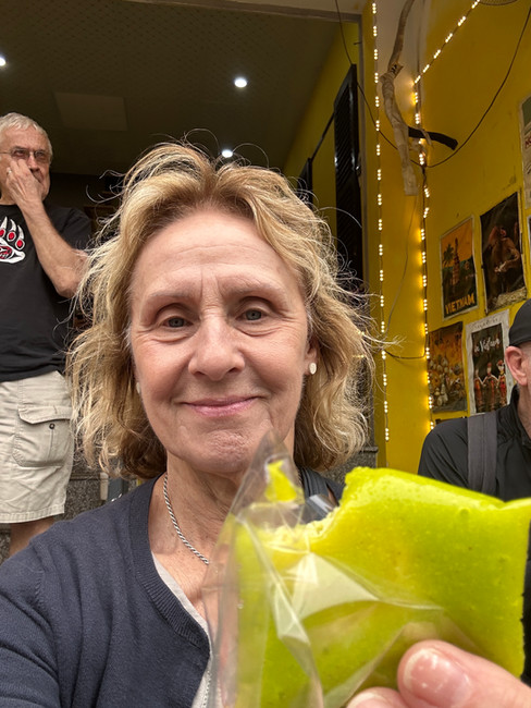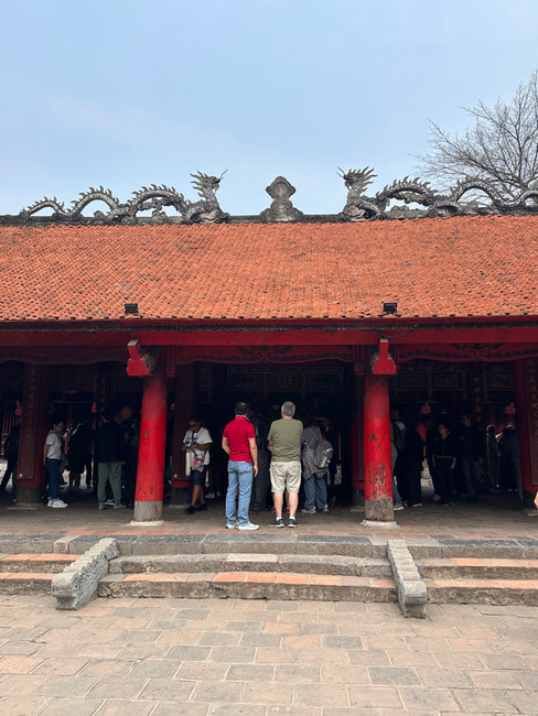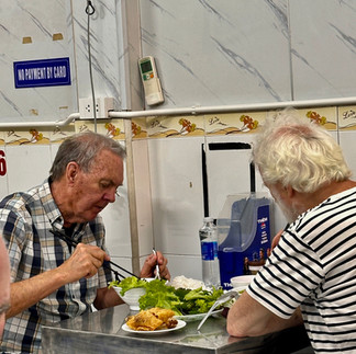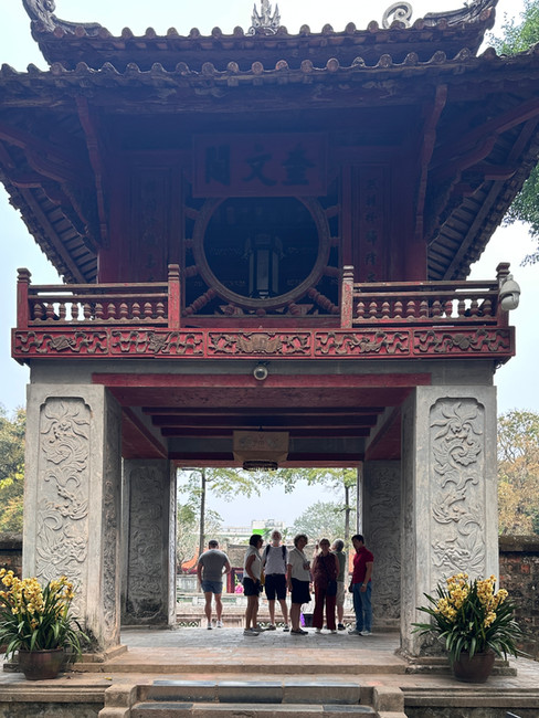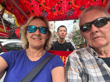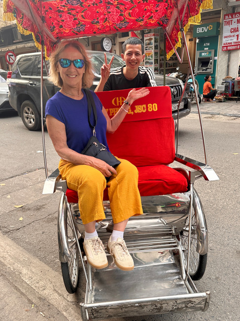We ended the day with a bit of fun - a rickshaw tour of old town Hanoi, dodging cars, motorcycles, people, busses, vans, and roadside sellers. We determined that rickshaws ‘sort of’, maybe, have the right of way, but we cannot confirm. It was a great opportunity for picture-taking. Again, we had an energetic young person keeping us safe in the chaos. Notice the picture of Bev checking to see if we are following (or still alive).