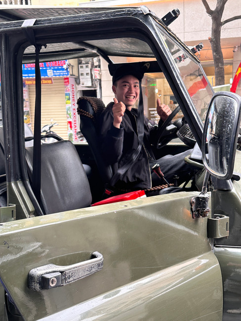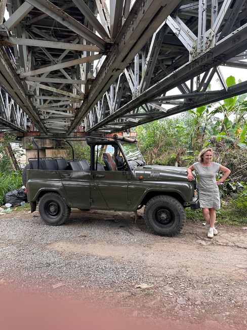 As my travelling companion Bev said, “with some beer (at lunch), two egg coffees, and a near-death experience (the train)”, we were “good to go”. To finish the day, we visited the B52 museum, and it seemed fitting to pull up in our old army jeep that sputtered to life only after Ming pumped the gas several times.