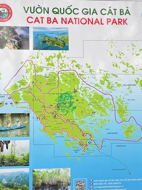 Cousin Ron’s friend, and our travelling partner for this portion of our trip, Carol, and I joined a tour to the Trung Trang Cave in the Cat Ba National Park on Cat Ba Island, a short boat and bus ride from our cruise boat. The Cat Ba National Park is a UNESCO-recognized natural area of forests, caves, and mangroves. It’s known for plant and animal species. The name Cat Ba means Women’s Island. There are two possible legends behind this name. One is that three women of the Tran Dynasty were murdered and when they washed up on shore, local fisherman erected temples in their honour. The other is that women held the place together while their men fought in the war. Take your pick of legend. At another time, this might be a great place to explore.
