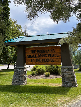 I entered the Valley from the north east through Kootenay National Park, down the steep hill (mountain?) and through the beautiful natural archway into Radium, a stunning entrance. You’re greeted with a sign that says, ”The mountains shall bring peace to the people” – that, combined with the promise of finding my soul in the forest, was surely a good omen for my week. They’ve built a massive ram’s horn statue ("Bighorns", 40 feet wide and 20 feet tall) in the middle of the traffic circle since I was there last. Radium is probably the most well-known, although not the largest, town in the middle of the Valley due to the hot springs and dramatic entrance - and big horn sheep. The Town internet site (radiumhotsprings.ca) says it was recently named the friendliest town in Canada.